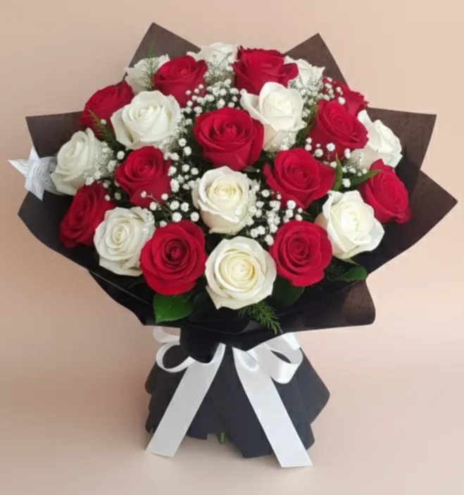 💐 Flowers: 28 – 30 Roses (Red & White mix )