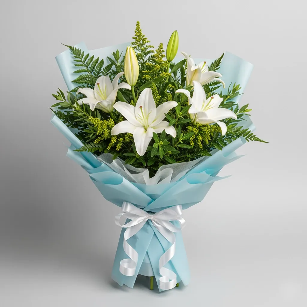 • Fresh 2 steam white lilies in full and bud bloom stage